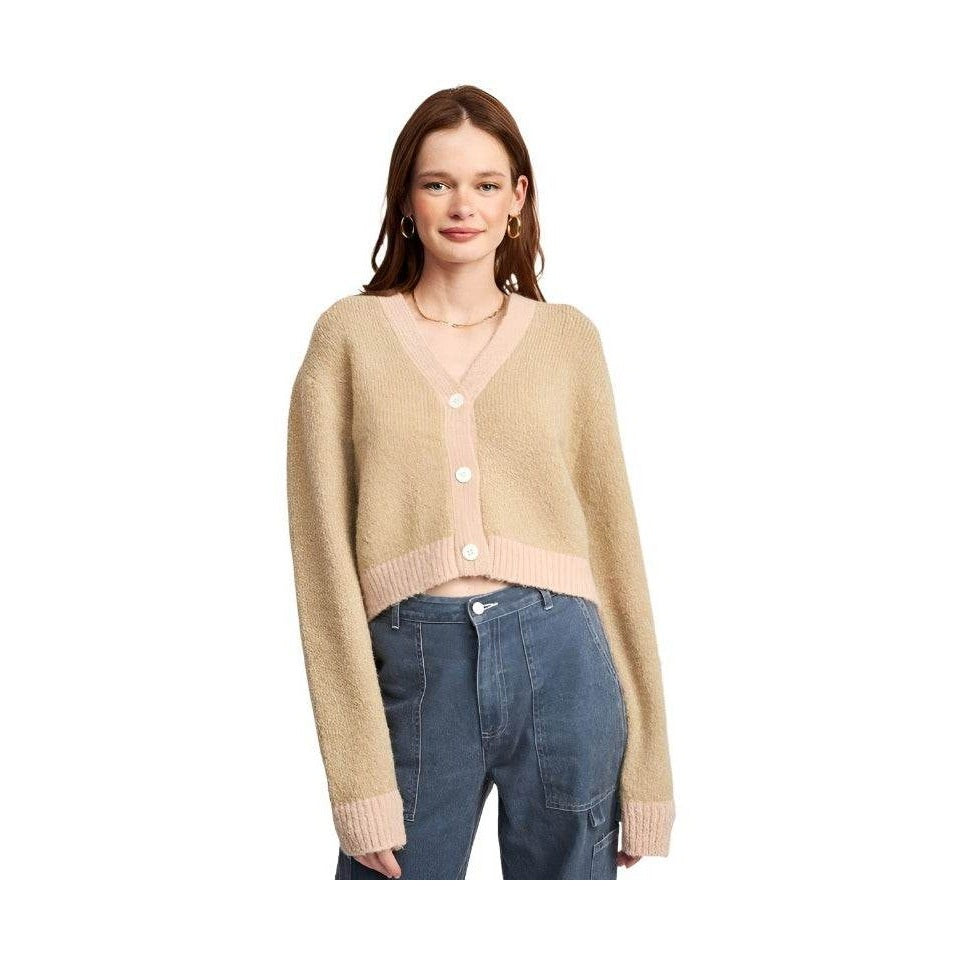 The cardigan features a chic V-neck design that effortlessly flatters all figures. Contrast detailing adds unique style, making it a timeless piece. It's versatile enough for pairing with jeans or over a dress, creating endless outfit possibilities.