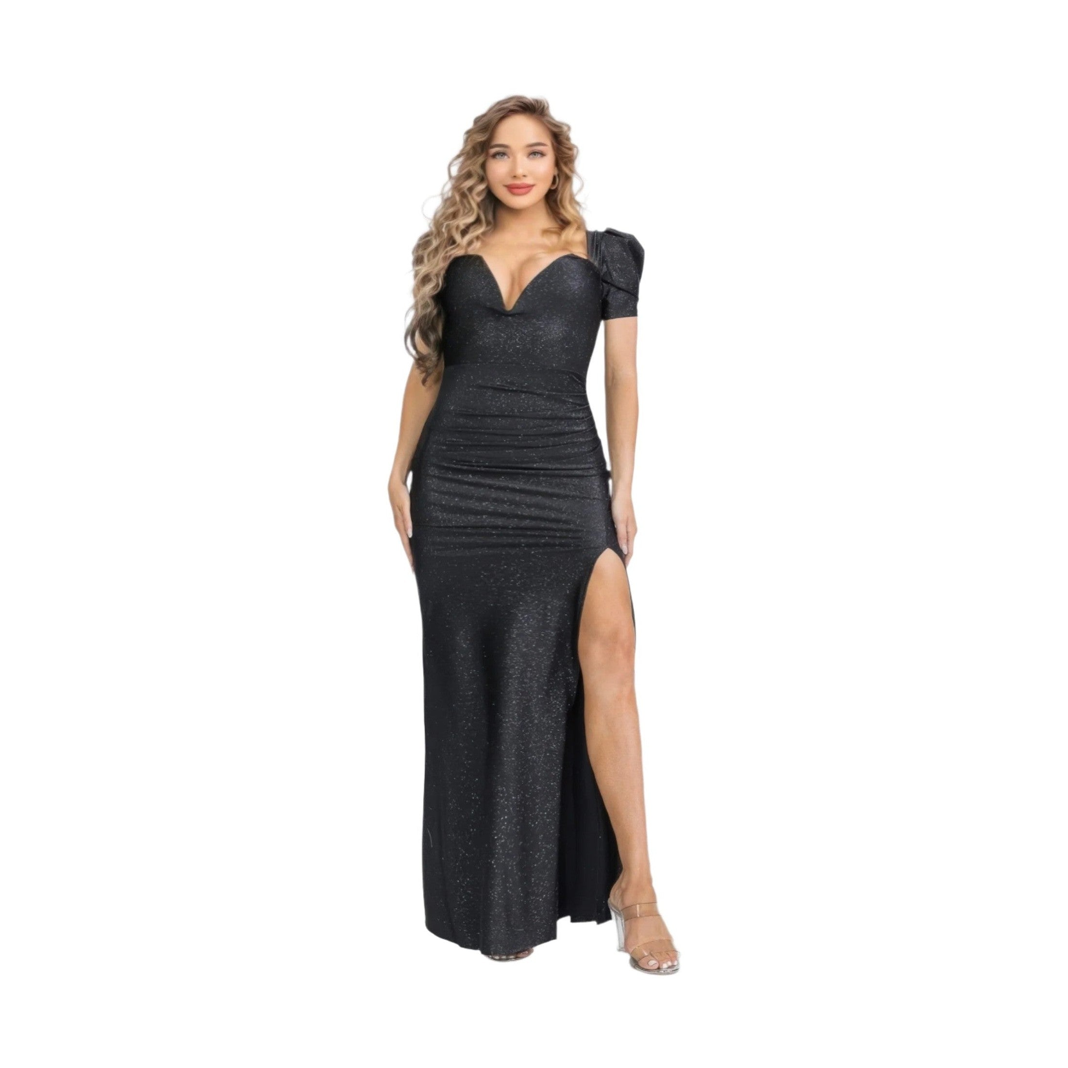Plus Satin Glitter Short Puff Sleeve Maxi Dress