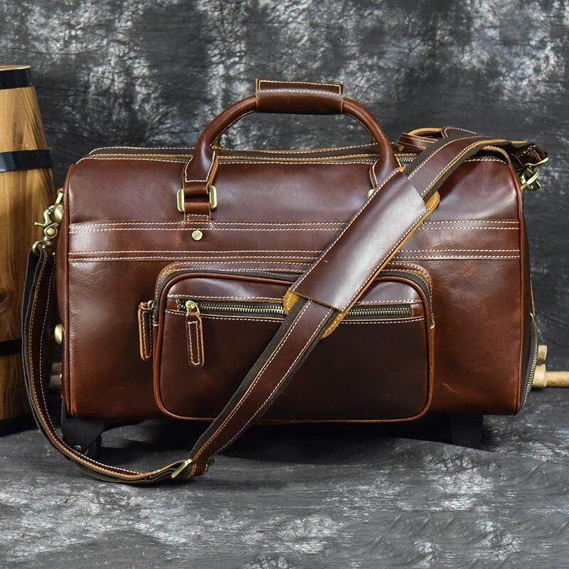 This bag is more than just luggage—it's a statement. The rich brown leather adds a touch of sophistication to your travel gear. Its robust handles and adjustable strap offer various carrying options, making it versatile for any situation. This premium leather wheeled duffel bag will transform your travel experience.