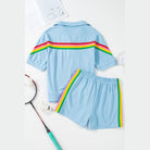 Vacation Outfits for Women - Green Colorblock Lounge Set with Retro Stripes