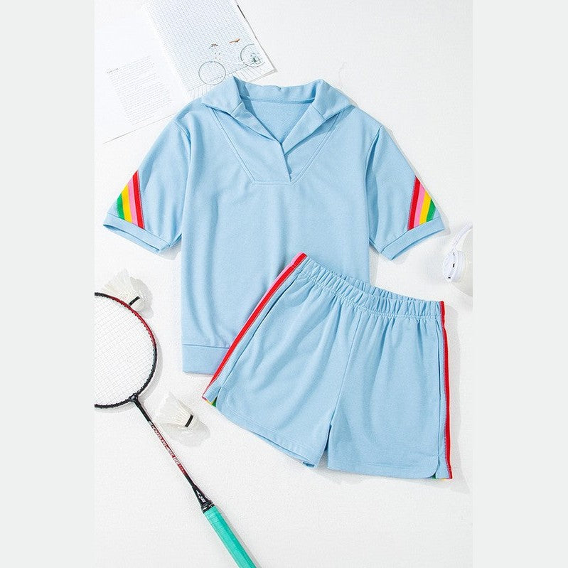 Wear the set while relaxing at home or running errands. The shorts have an elastic waistband that fits comfortably on different body shapes. Bright stripes on the sleeves and shorts add a sporty touch. Pair your green colorblock 2pc set with sneakers for an easy outfit. Shorts have enough length for movement. The top gives good coverage. No need to worry about staying cool. The soft material is gentle on your skin.