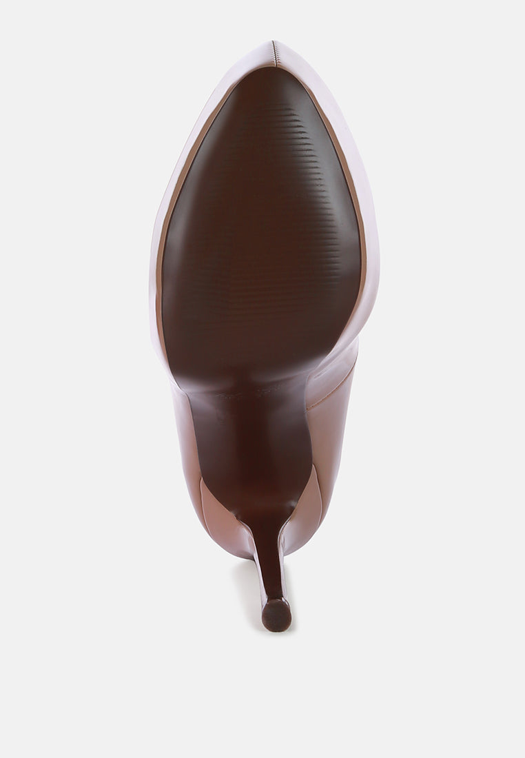 The stiletto high-heeled dress sandals in patent faux leather are an exquisite pair of shoes you can own. These stiletto pumps with a raised platform offer a stylish and elevated look, while the stiletto heels will look stunning on your feet.