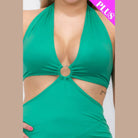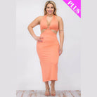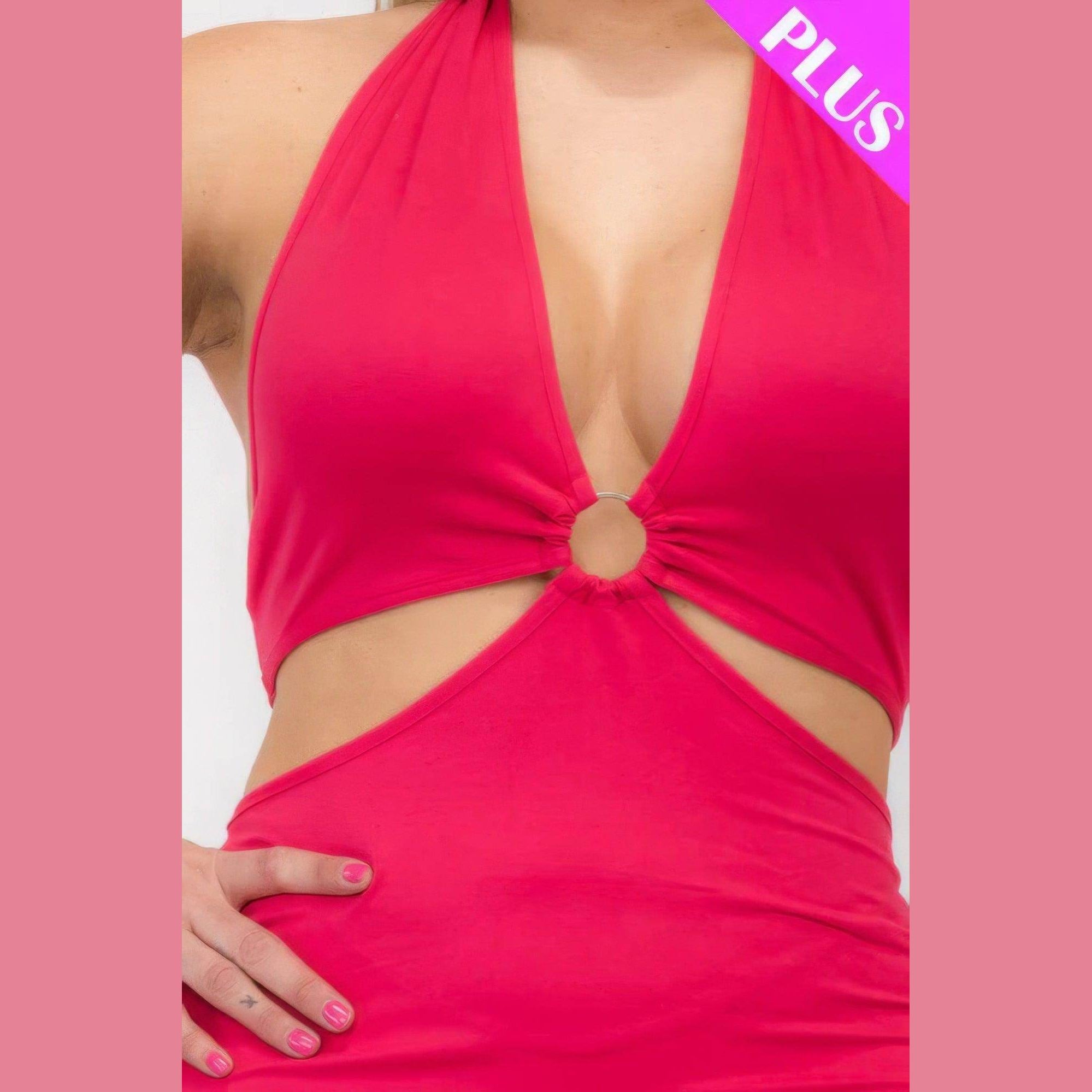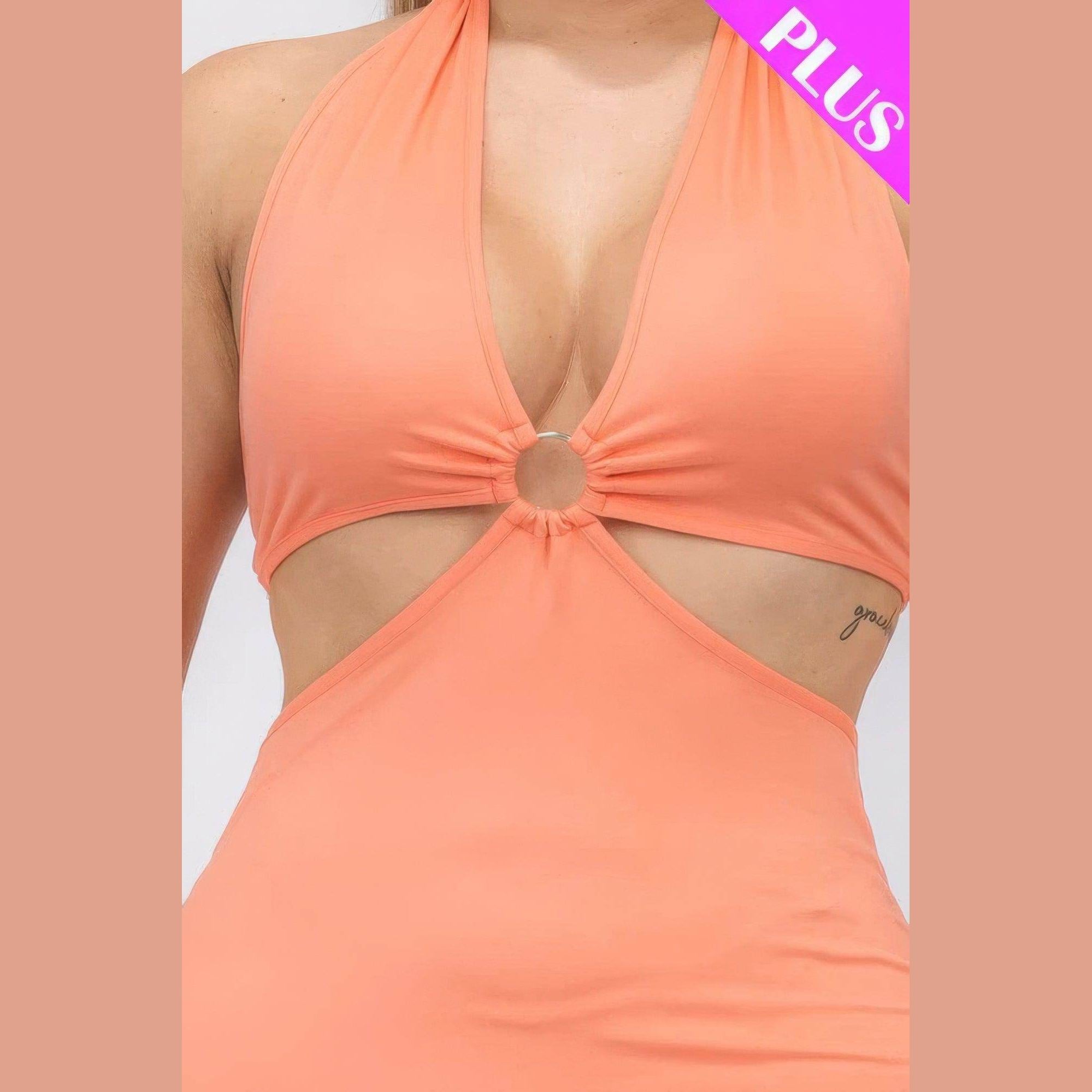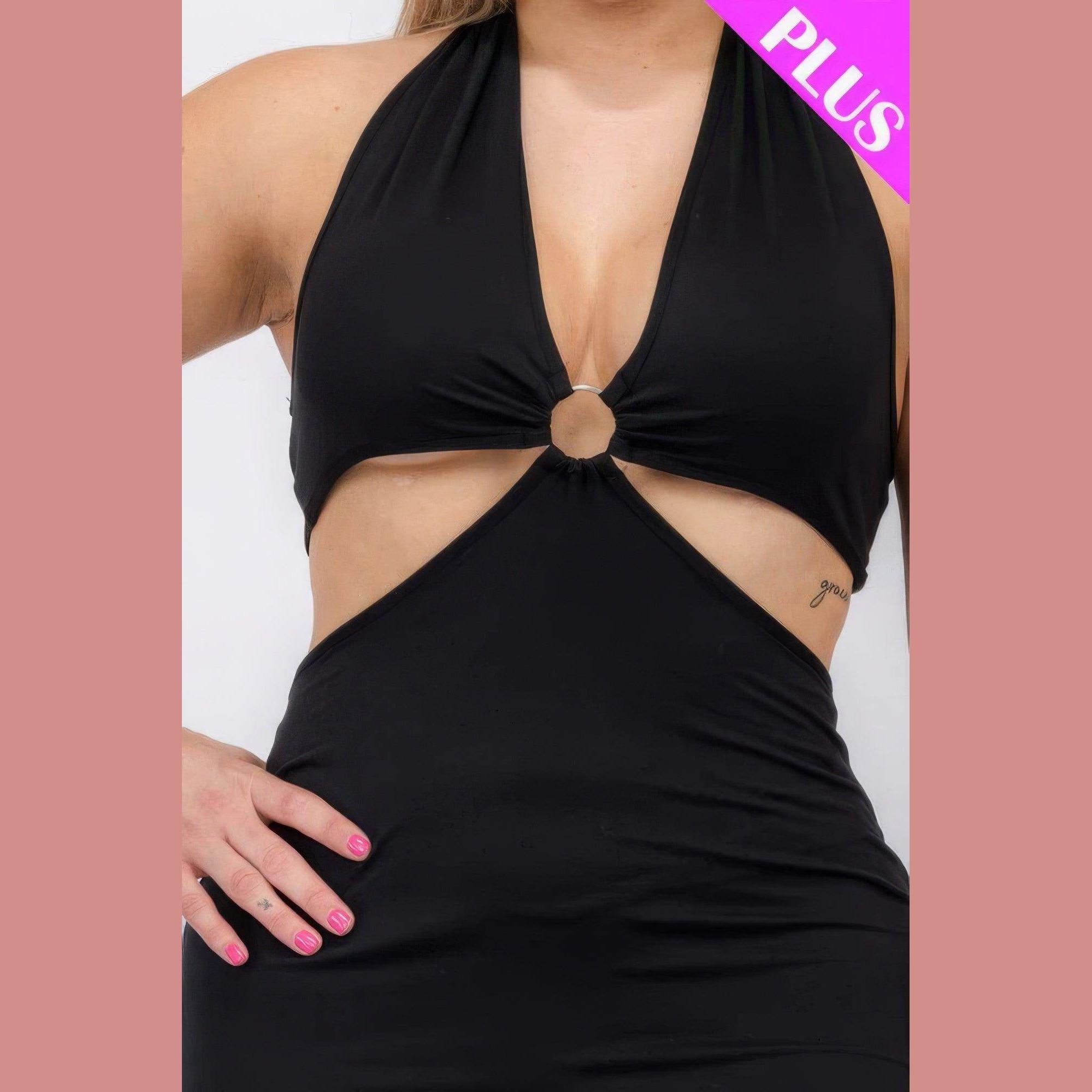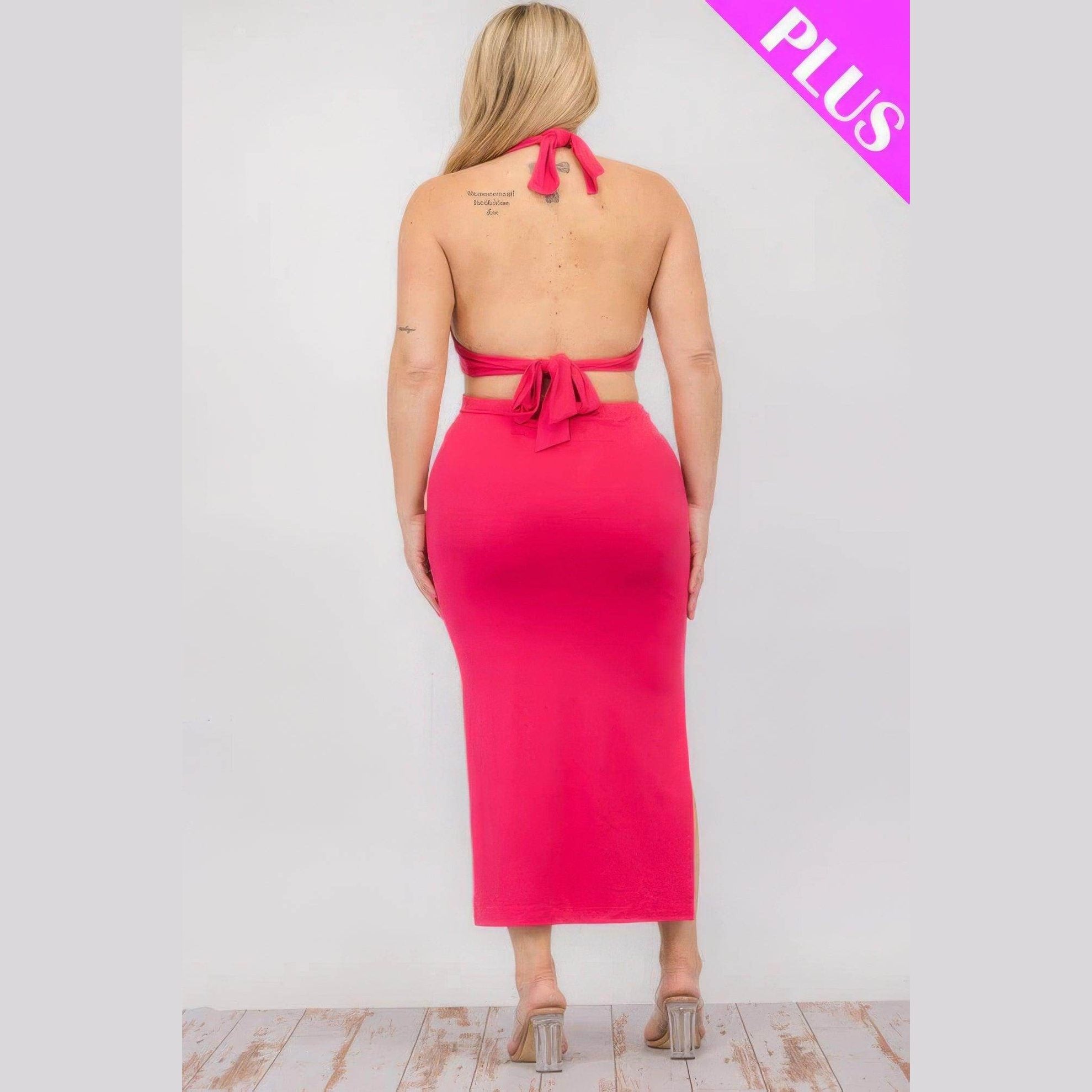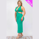 Learn more about our Plus Size Cut-out Halter Neck Back Tie Split Midi Dress at VacationGrabs: