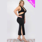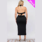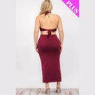 Plus Size Cut-out Halter Neck Double Back Tie Split Thigh Midi Dress