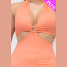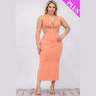 Plus Size Cut-out Halter Neck Back Tie Split Midi Dress