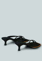 Kitten Heels Square Toe-Thong Sandal made up of luxurious leather. The handcrafted shoe rests on a durable and flexible man-made sole.