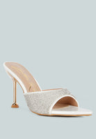 The rhinestone embellishments on these stiletto sandals make them look classy and stunning. The slip-on stiletto heels are perfect as bridal shoes, wedding guest shoes, bridesmaid shoes, and literally every occasion!