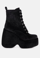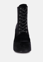 Stunning pair of bright shoes which will make your winter wardrobe insanely beautiful! The fine cut pile velvet ankle boot has lace uo detail and an additional side zipper which makes it easy to wear. Has pull tabs. The well crafted boot fits well and looks glam.