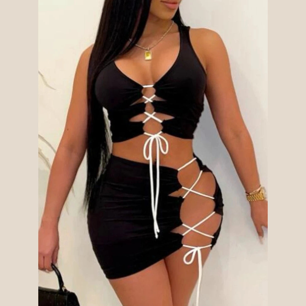 VacationGrabs Alluring Club Mini Dress with Lace-Up Detail