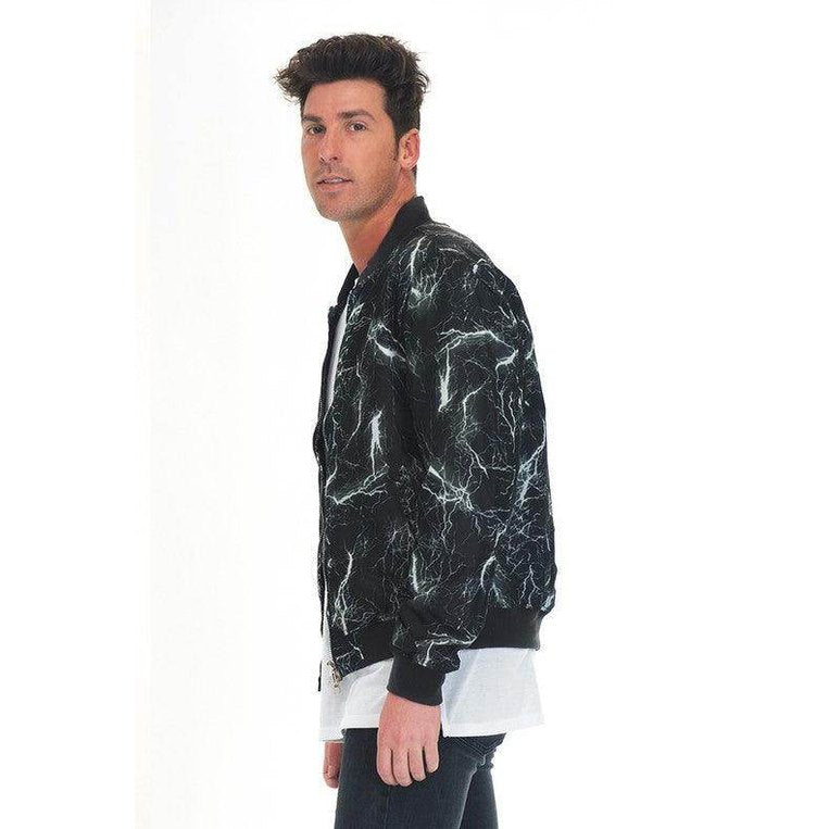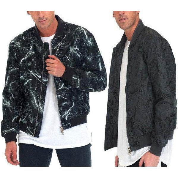 Digitial Print Thunder Lightning White and Black Windbreaker Bomber Jacket for Men