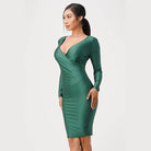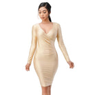 Long Sleeve Shiny Tricot Overlap Midi Dress