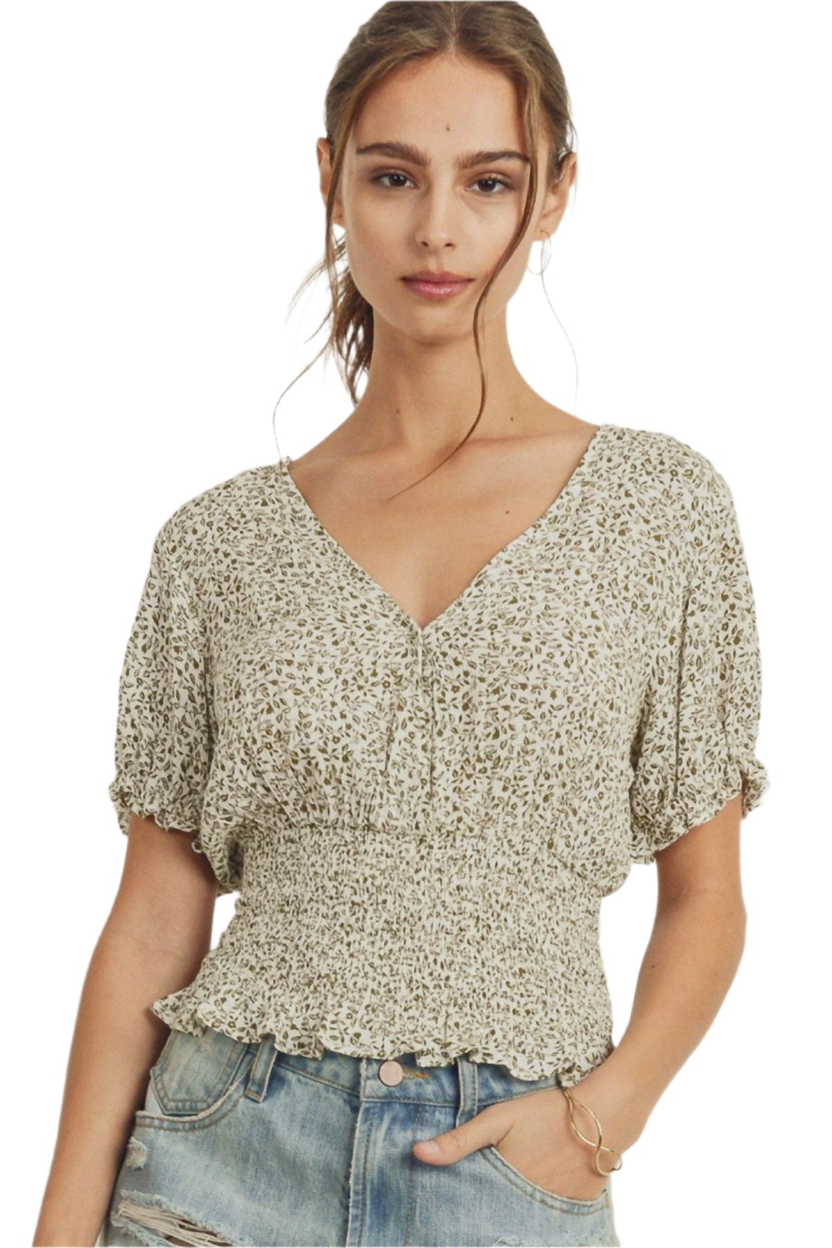 Experience the perfect blend of fashion and comfort with our Puff Sleeve Smocked Waist Surplice Top, featuring a surplice neckline, puff short sleeves, and a stylish floral print. This piece sets itself apart with a unique design that effortlessly transitions between different occasions.