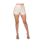 The shorts have a mid-rise waist. The button closure feels secure yet comfortable. The light color matches tops in every shade. Pair them with sandals, sneakers, or heels.