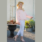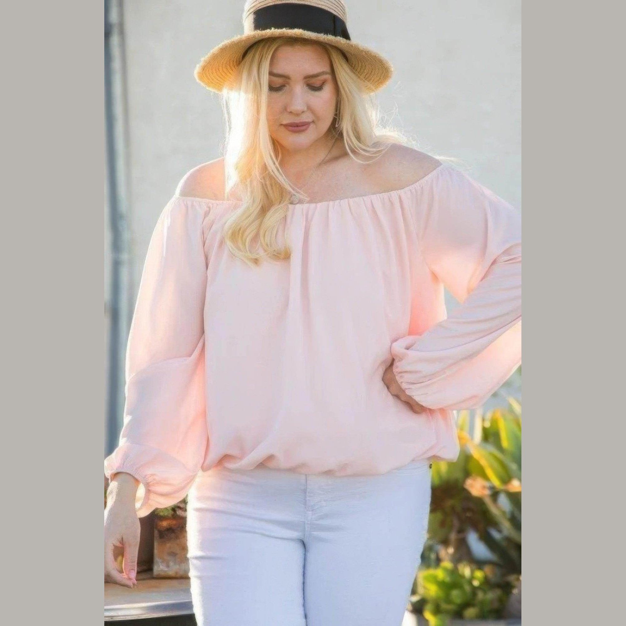 Elevate your style with our Off Shoulder Long Bubble Sleeve Solid Top in Rose. The combination of an off-shoulder design, long bubble sleeves, and the delicate Rose color makes it a standout choice for those seeking a chic and versatile wardrobe staple.