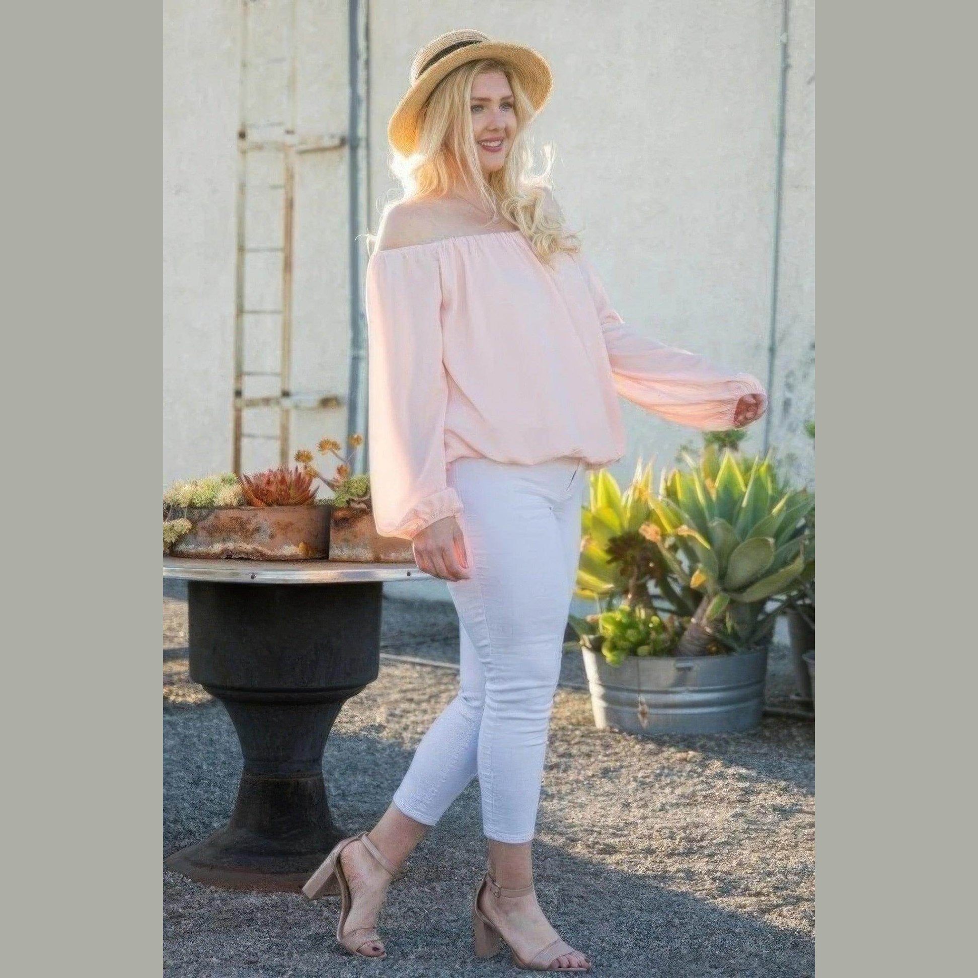 Why Choose Off Shoulder Long Bubble Sleeve Solid Top in Rose?