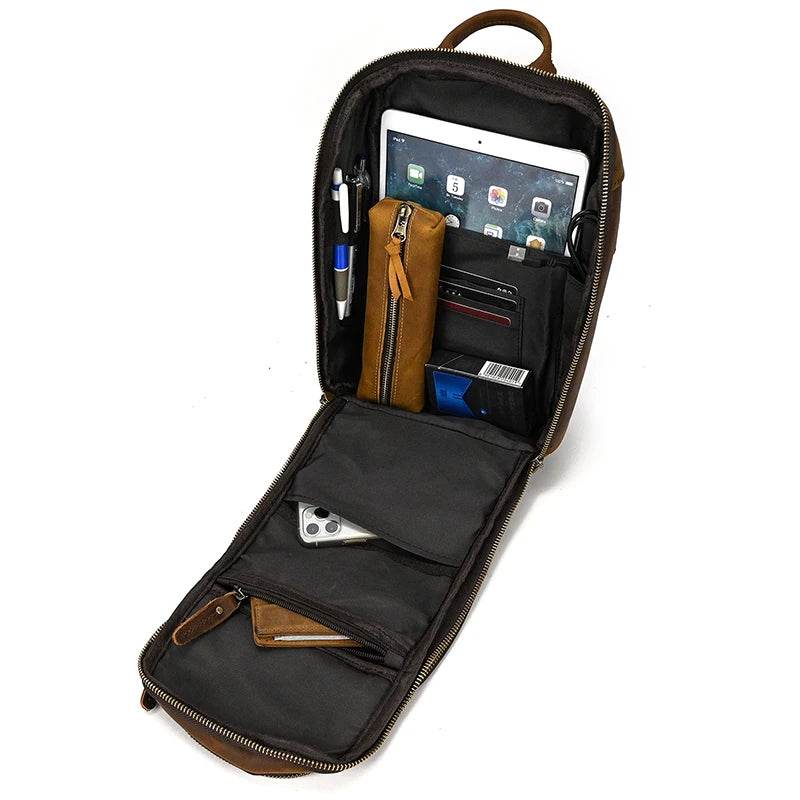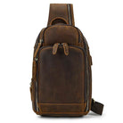 Leather Chest Bag with USB Charging Port Crossbody Bag for Men