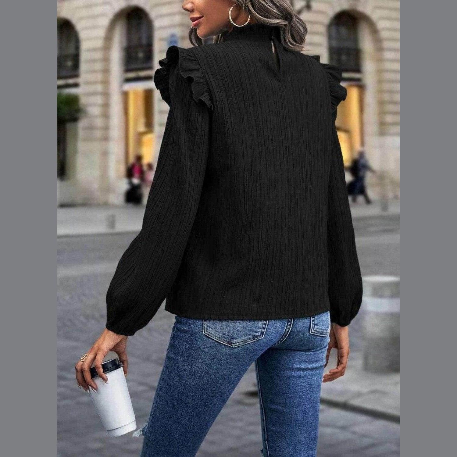 VacationGrabs Mock Neck Blouse for Travel with Ruffle Detail