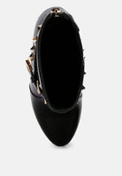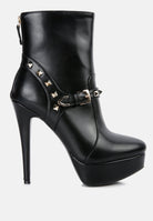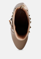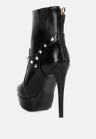 Dejang Metal Stud Embellished Faux Leather Ankle Boot