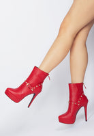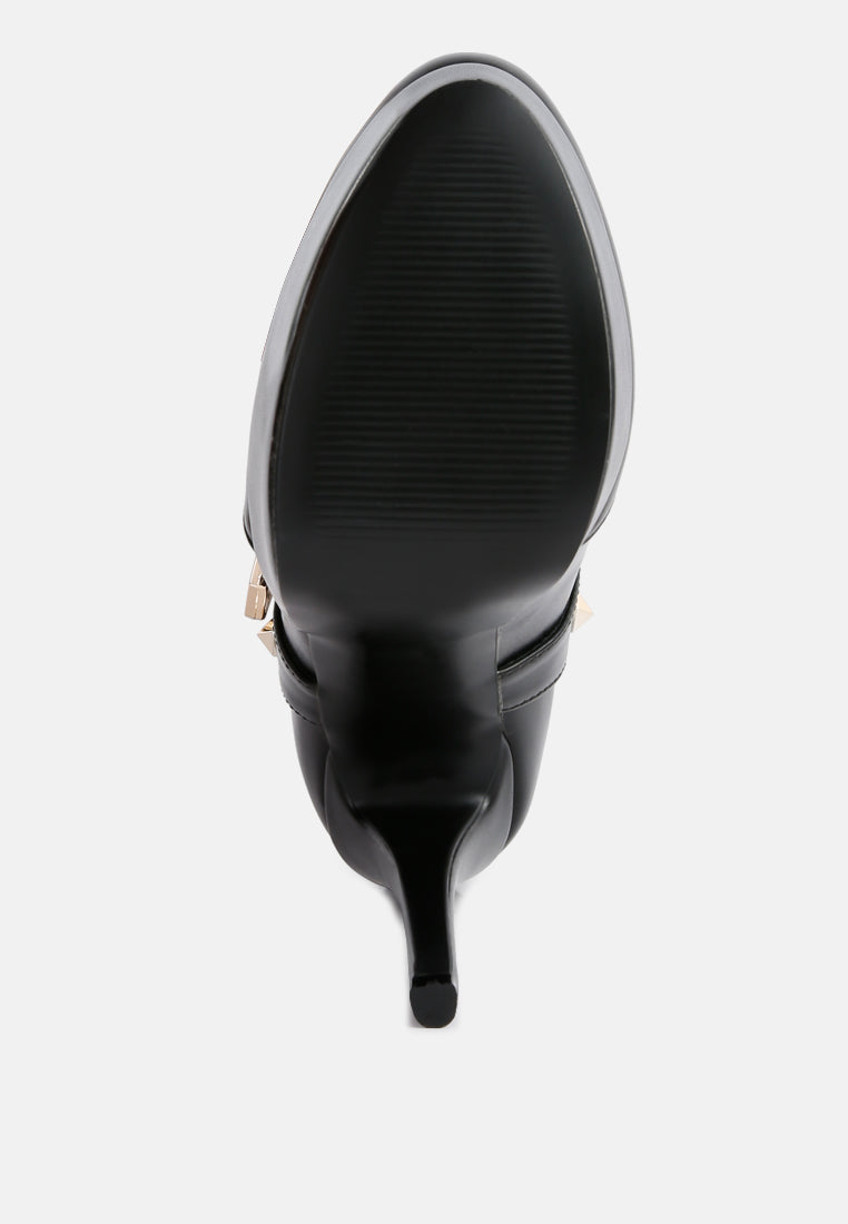 The stud embellished boots are ravishing and bold with a belt embellishment across. The zip opening at the back makes them easy to wear while the lightly padded insole is gentle on the feet. These are great for winter weddings as bridal shoes, wedding guest shoes and party shoes
