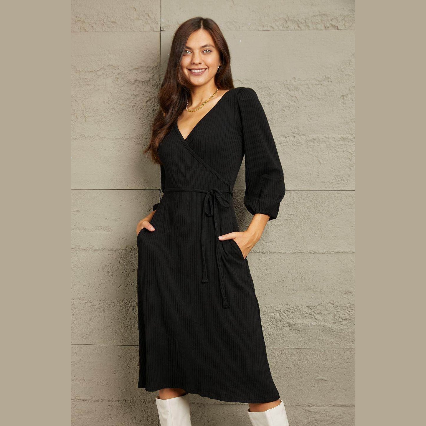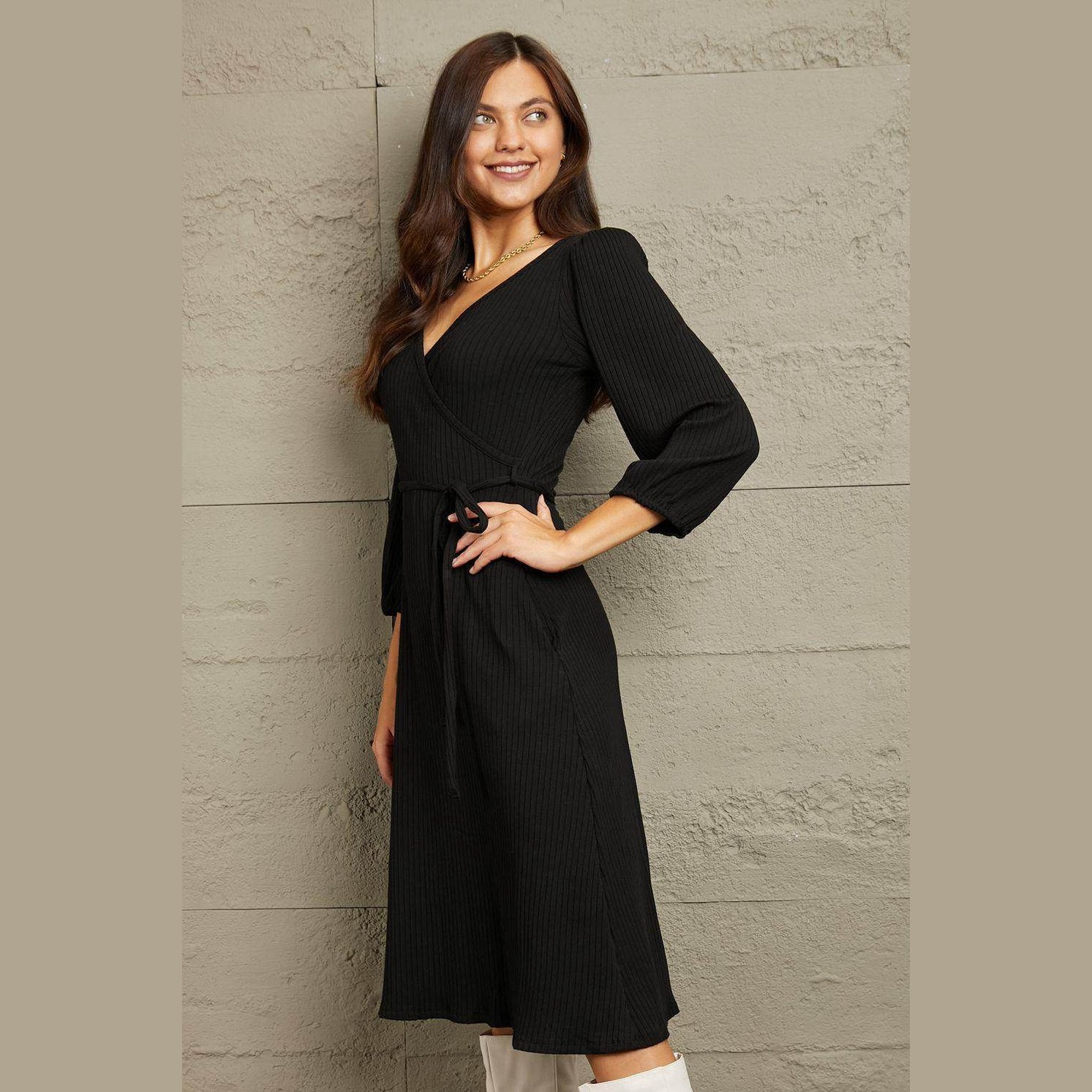 Learn more about our Culture Code Full Size Surplice Flare Ruching Dress at VacationGrabs: