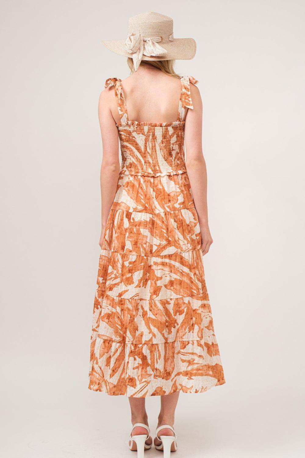 Learn more about our And The Why Tie Shoulder Smocked Midi Tiered Dress at VacationGrabs: