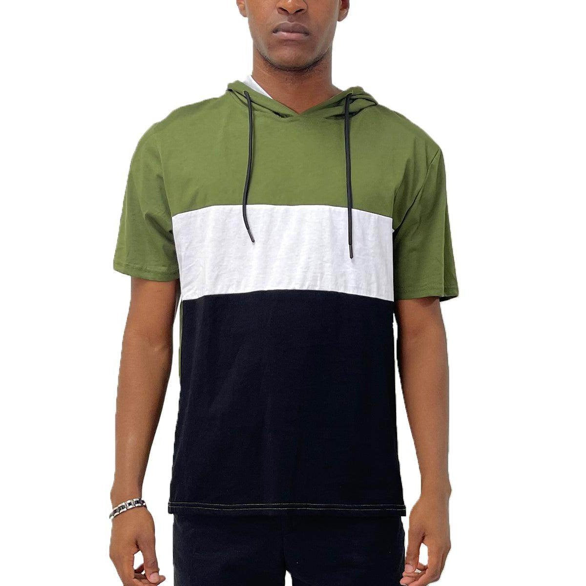 Upgrade your look with the Mens Olive Green Tri Color Block Hooded T-Shirt from VacationGrabs. This shirt is a must-have for those wanting to elevate their vacation style. Designed with a comfortable fit, it features a unique tri-color block pattern that seamlessly combines green, white, and black. The soft fabric offers breathability, making it ideal for warm weather or layering in cooler climates.