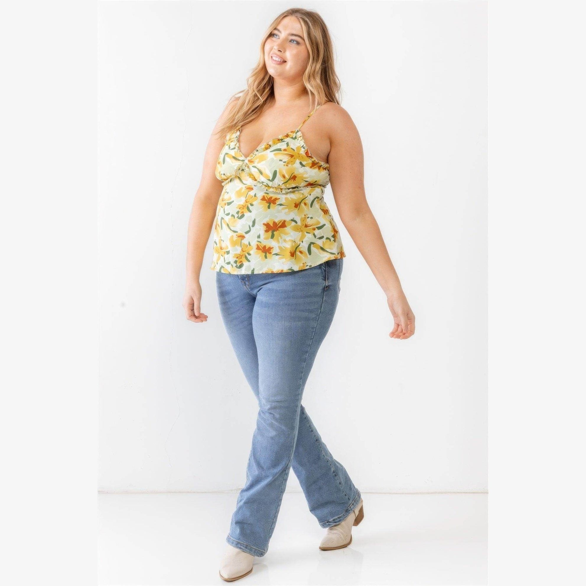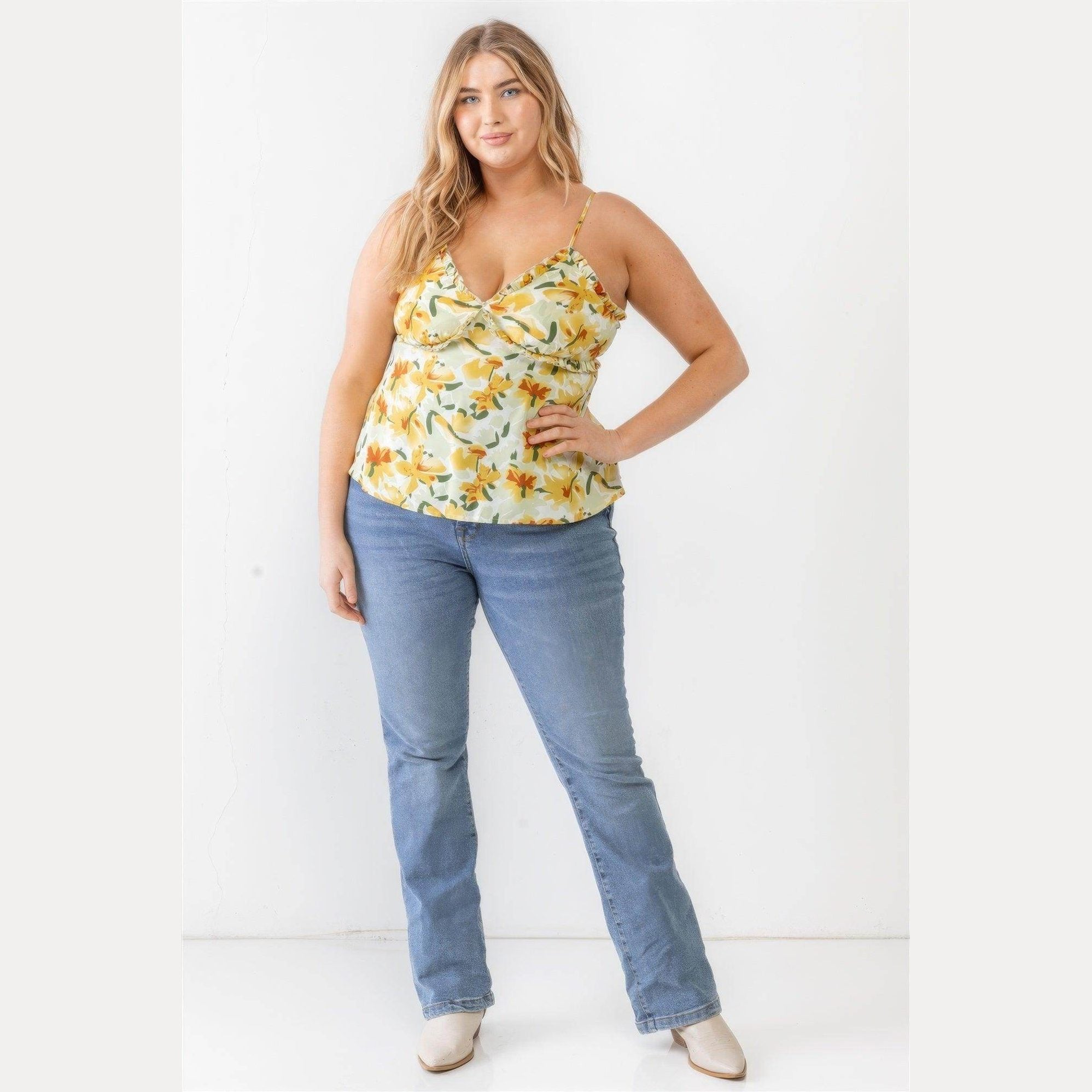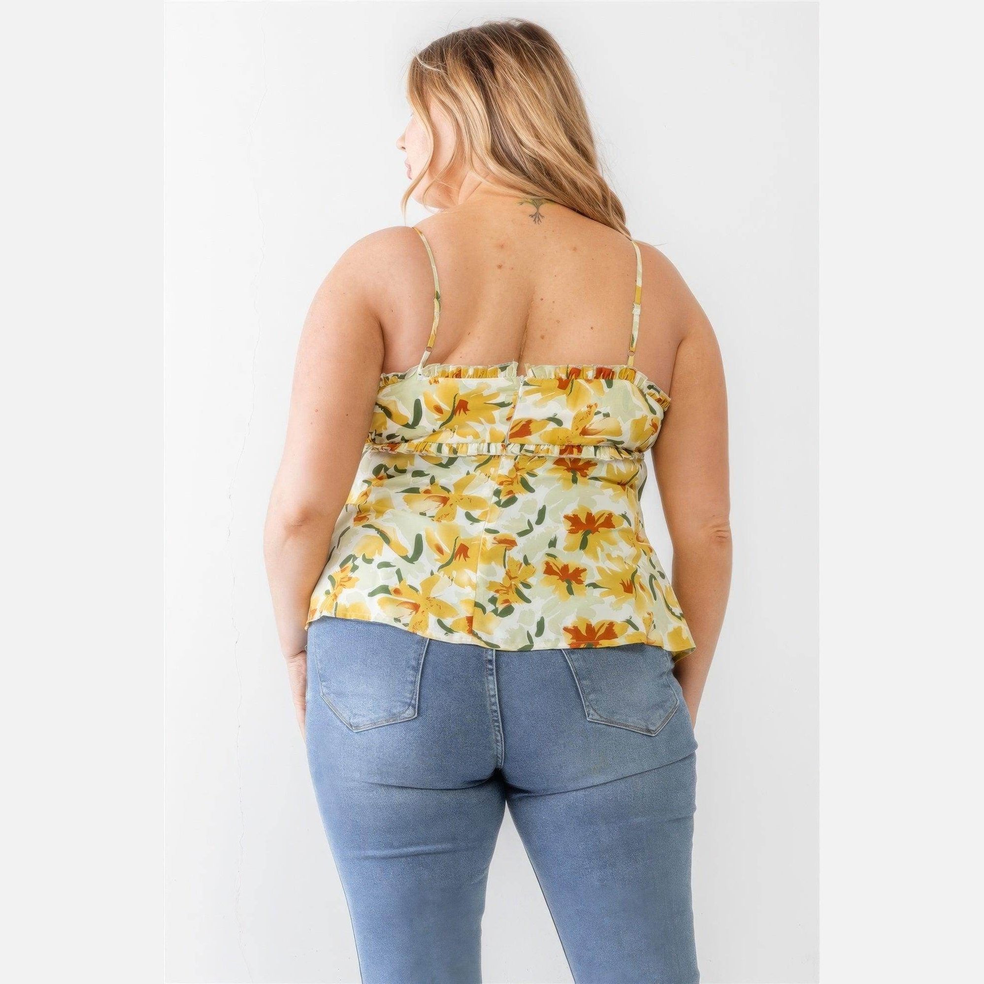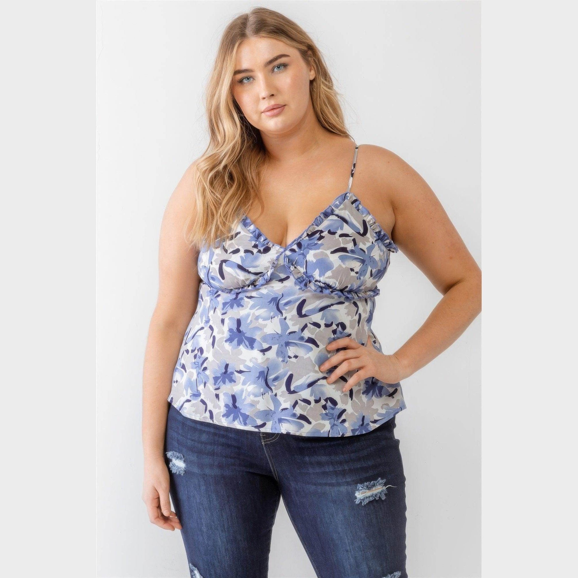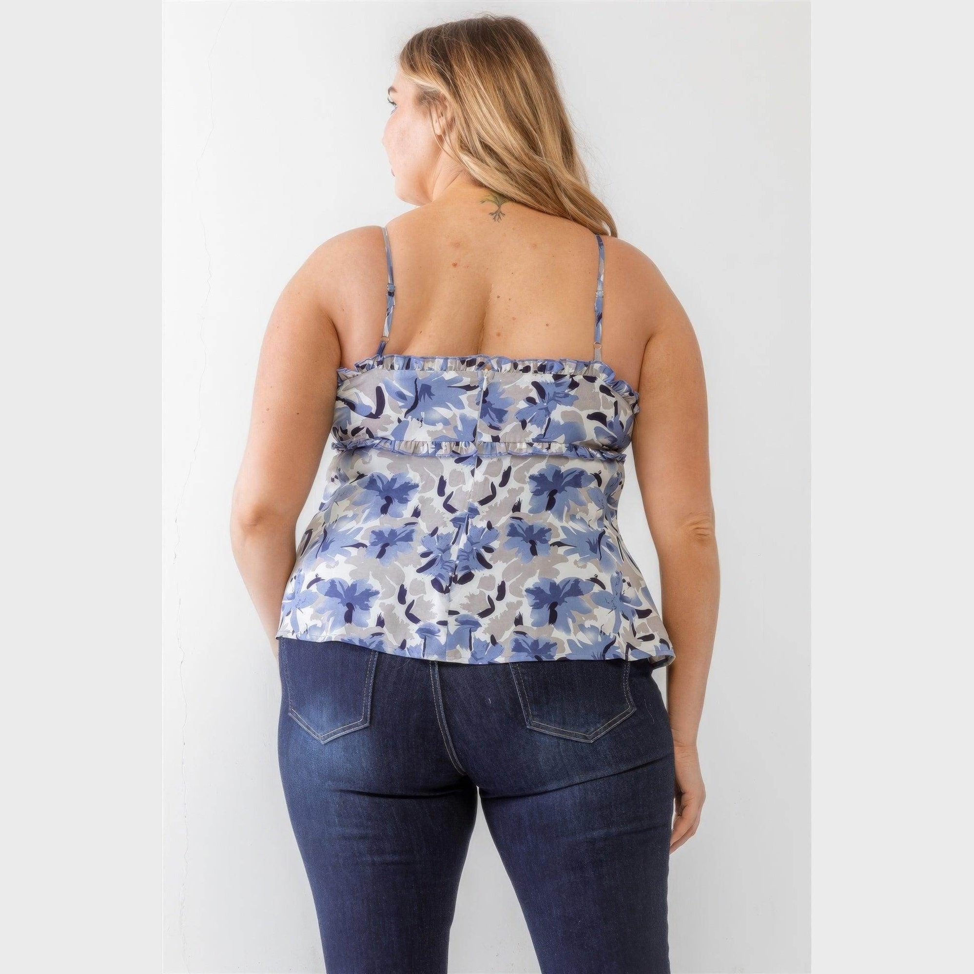 Learn more about our Plus Floral Ruffle Sleeveless Top at VacationGrabs: