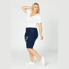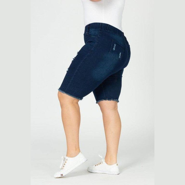Plus Hi-Waist Distressed Bermuda Short Jeggings