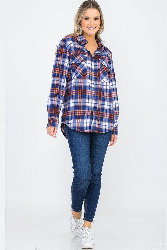 Boyfriend Fit Checker Plaid Flannel Long Sleeve