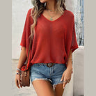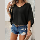 Learn more about our V-Neck Batwing Sleeve Knit Top at VacationGrabs: