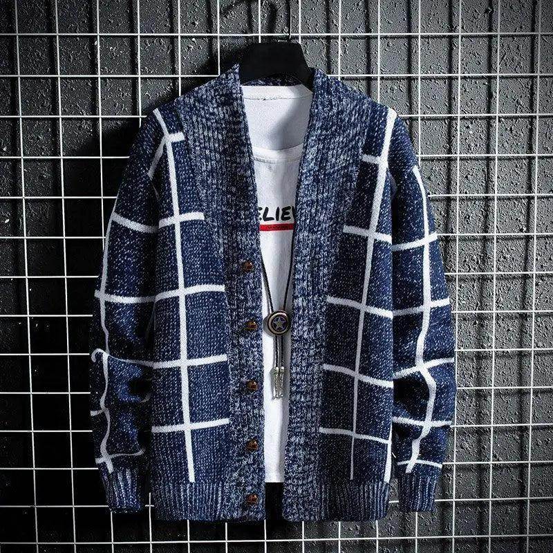 Learn more about our Mens Shawl Collar Block Plaid Cardigan at VacationGrabs: