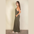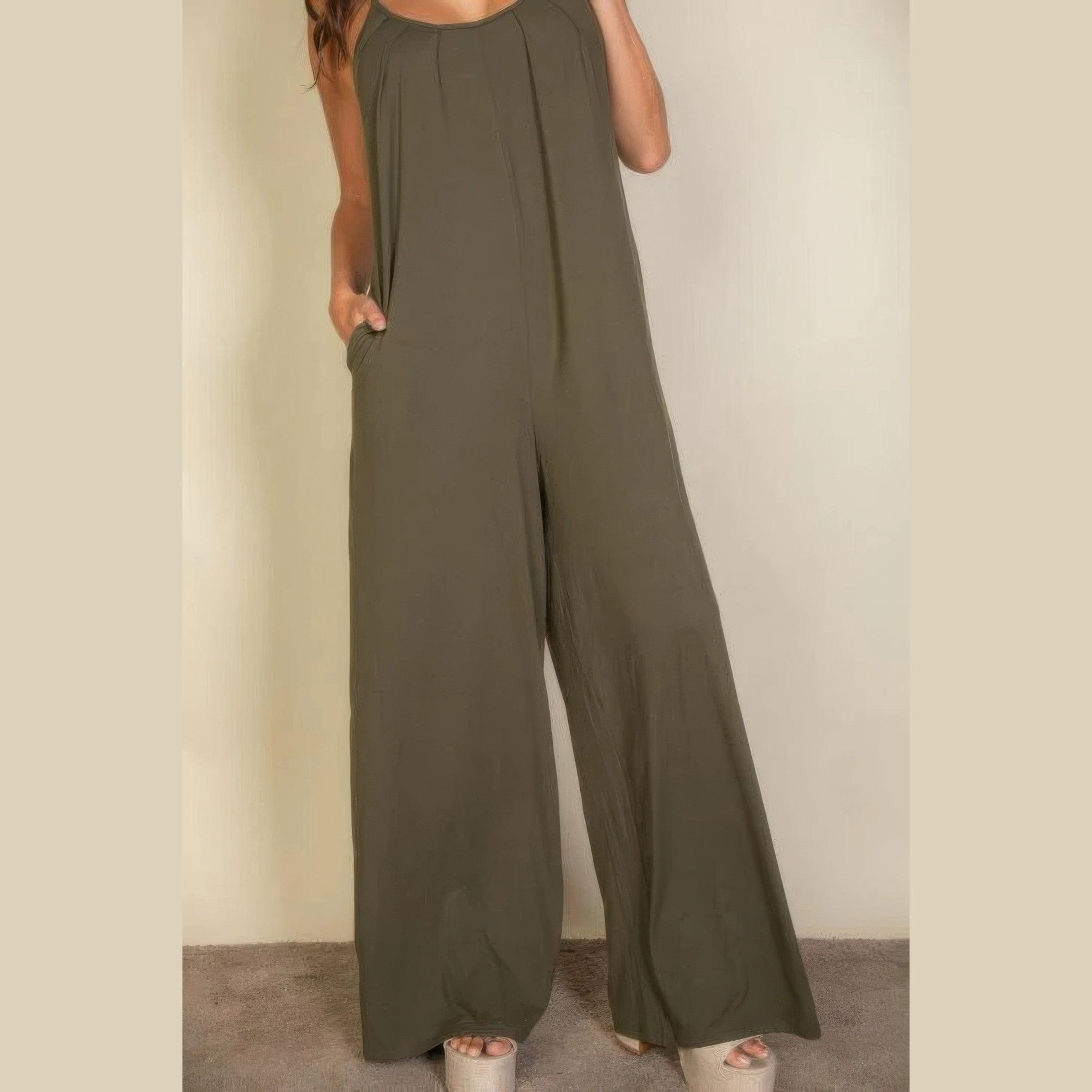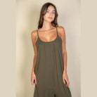Spaghetti Strap Solid wide Jumpsuit Olive