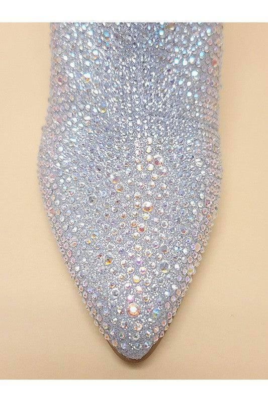 The iceberg rhinestone footwear combines fashion and function. With a comfortable fit and easy side zip closure, these boots make dressing up effortless. Ideal for elevating your evening attire, they blend seamlessly with both casual and formal looks. The durable sole provides a steady grip, making them perfect for a night out or a special occasion.