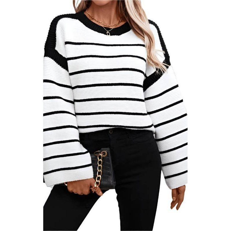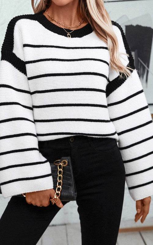 Experience luxurious comfort and effortless style with our Womens Knit Striped Sweater. The wide sleeves provide a relaxed and elegant look, while the soft knit fabric keeps you cozy all day long. Perfect for any occasion, this sweater is a must-have for any fashion-forward woman.
