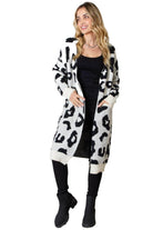 This cardigan boasts a striking leopard print design that adds a touch of wild elegance to any outfit. The open front style makes it effortlessly versatile, ideal for layering over a basic tee or dressing up with a sleek top for a night out.