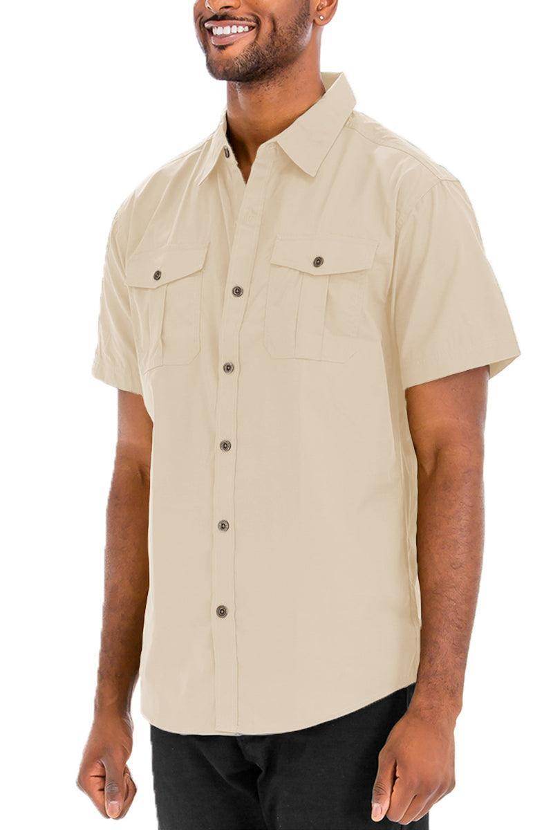 Crafted from high-quality materials, the mens khaki button down shirt provides breathability and comfort throughout the day. It's designed to keep you cool in tropical climates or during active excursions. Khaki is a timeless color that pairs effortlessly with various outfits, from jeans to shorts.