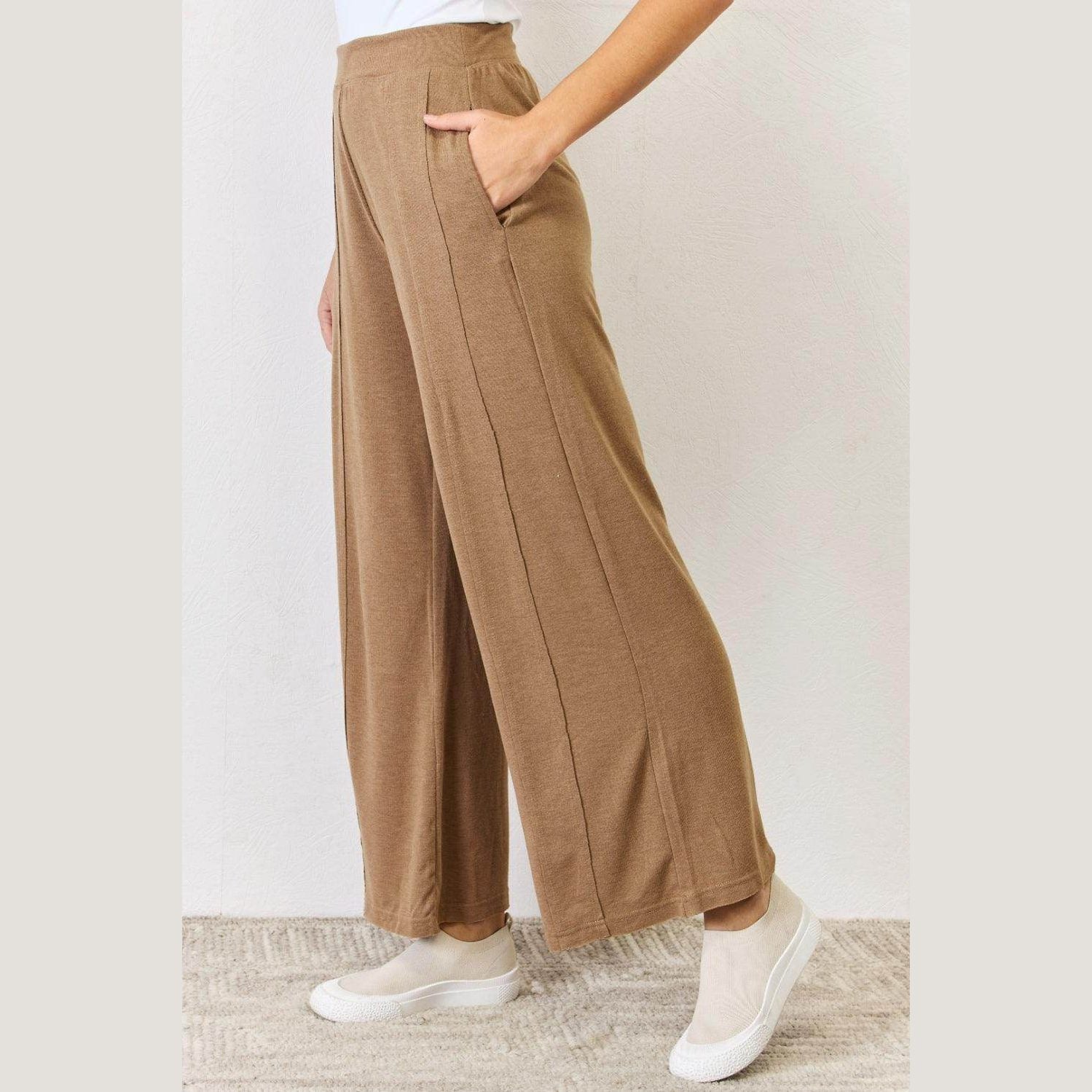 These pants offer a buttery-soft feel against your skin, making them perfect for lounging at home or running errands in style. The wide-leg design provides a breezy, relaxed fit, ensuring maximum comfort without compromising on elegance.