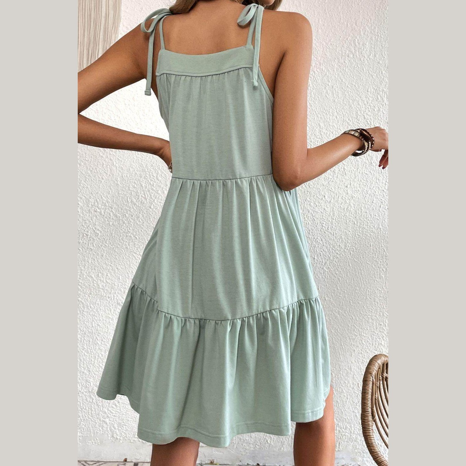 Learn more about our Tie-Shoulder Tiered Dress with Pockets at VacationGrabs: