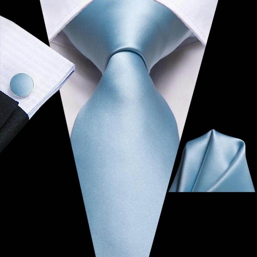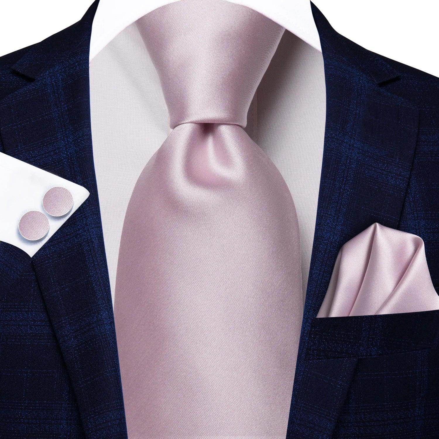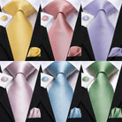 Pastel Solid Silk Wedding Ties Cufflink Set