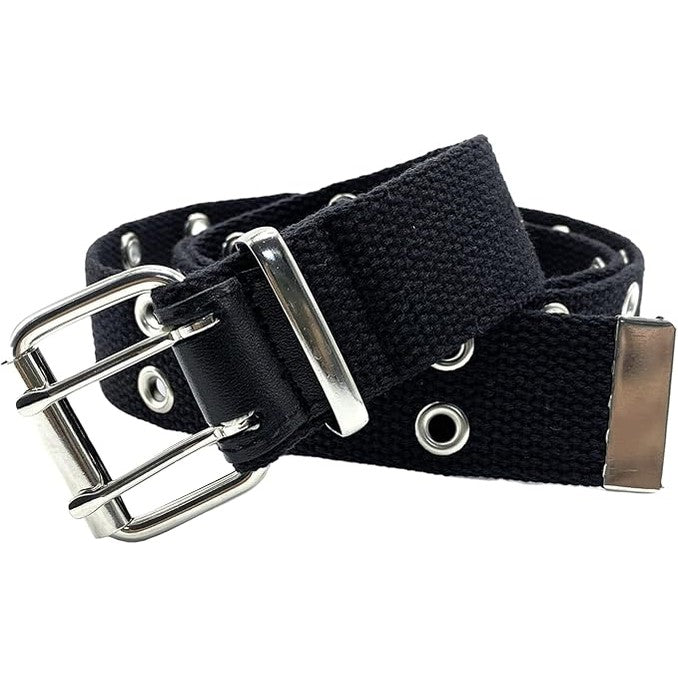 Double Grommet Canvas Punk Web Eyelet Belt – Unisex 1.5" Wide 2-Hole Jeans Belt