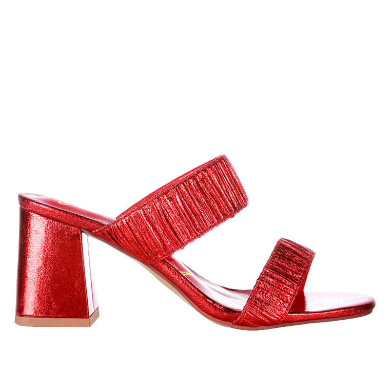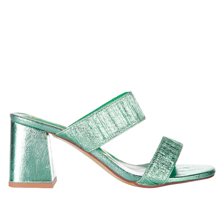 Step into sleek style with Metallic Slip-On Block Heels. The metallic finish adds a touch of shine, perfect for any occasion. Combining comfort and fashion, these block heels offer easy wear and a confident lift.