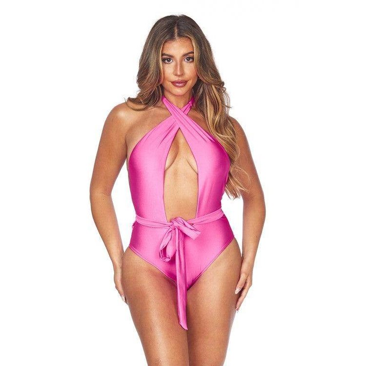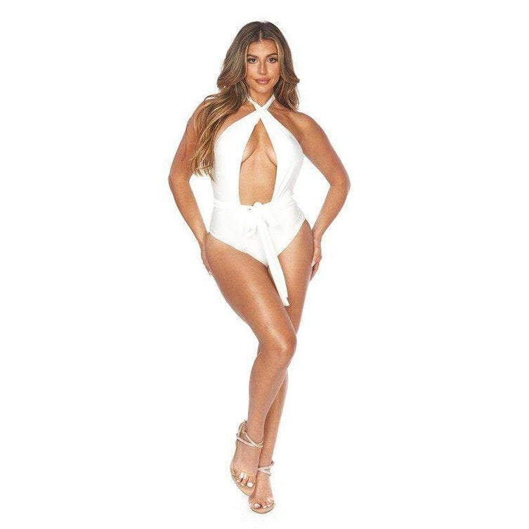 Swimwear - One Piece Criscross Halter Neckline Waist Wrap Belt