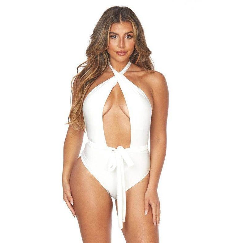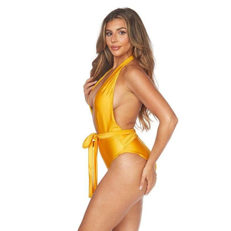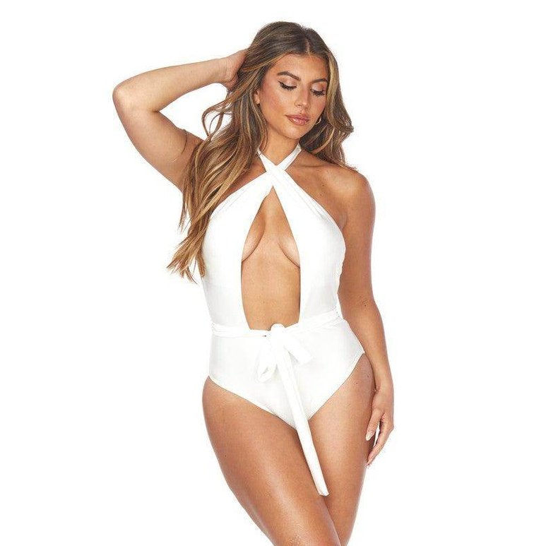 Learn more about our Swimwear - One Piece Criscross Halter Neckline Waist Wrap at VacationGrabs: