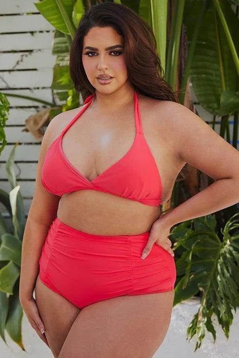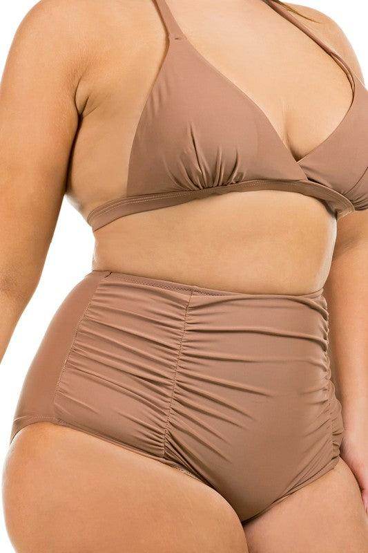 Learn more about our Swimwear - Two Piece High Waist With Rughe Front at VacationGrabs: