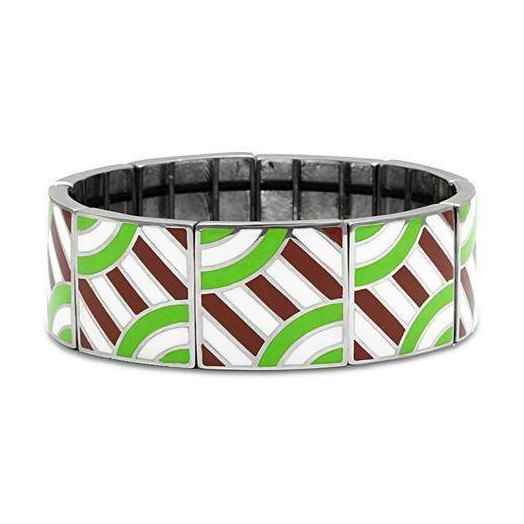 Get in on the trend with our Geo Pattern Bracelet! This stretchy green and brown piece will add a unique touch to any outfit. Show off your style with this playful accessory. (Geo-riffic!)