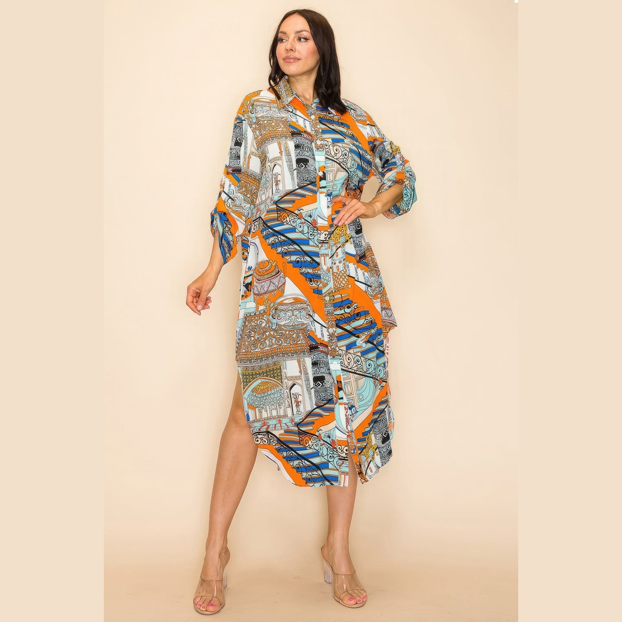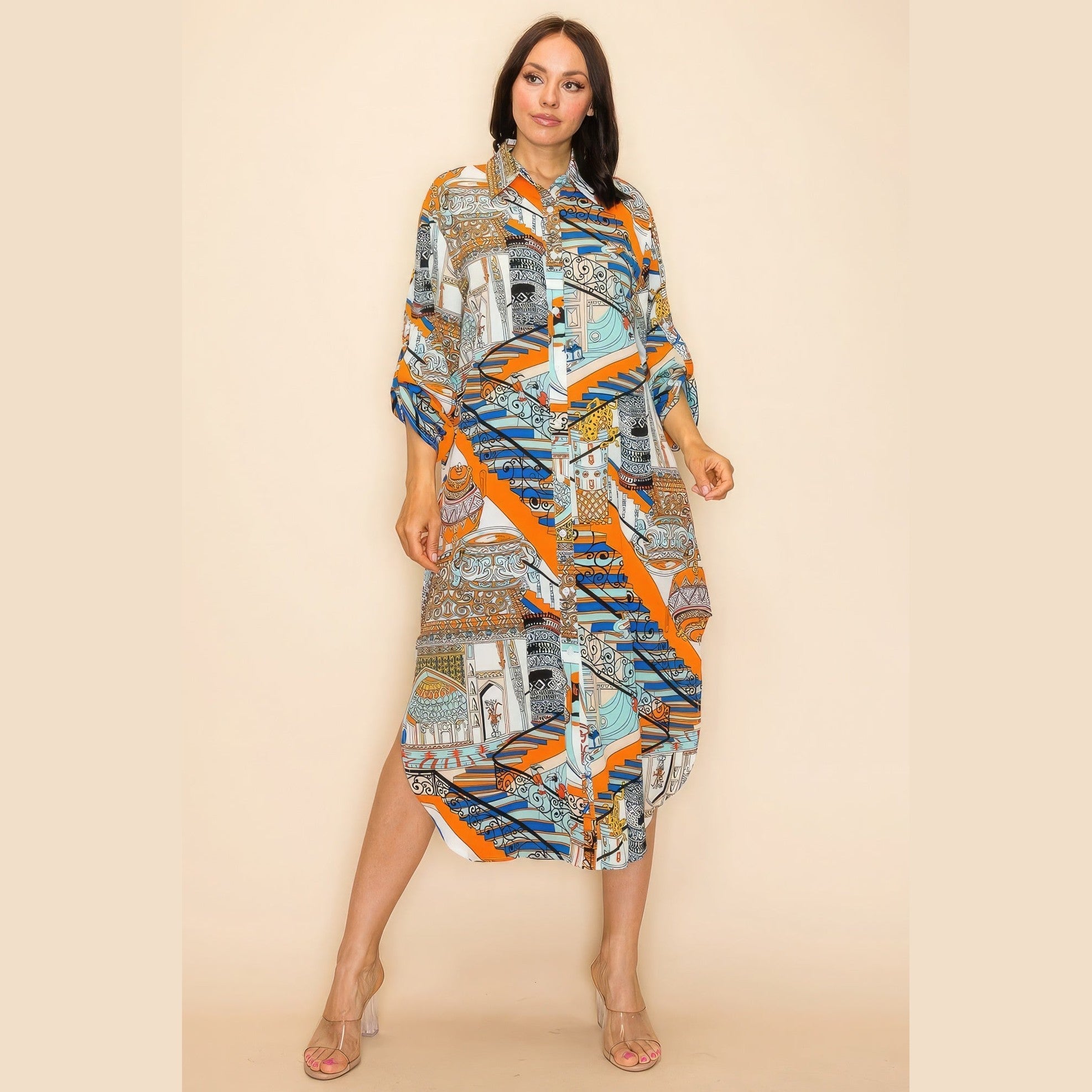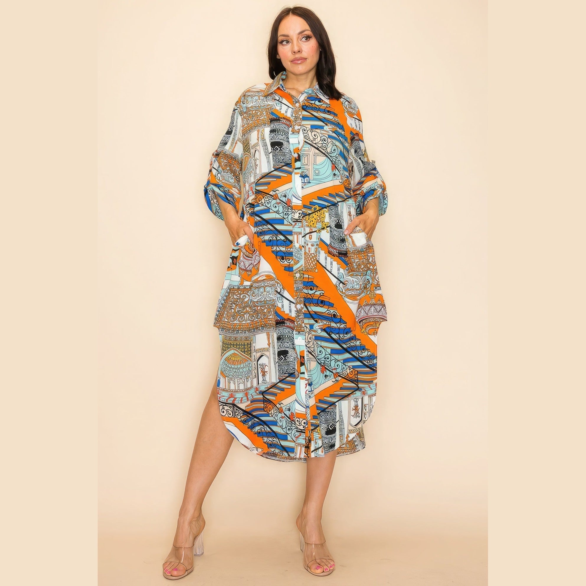 Revitalize your wardrobe with our Printed Shirt Dress, a versatile and stylish piece designed for both comfort and fashion. Meticulously crafted with attention to detail, this dress features a captivating print, a convenient button-down design, functional pockets, and adjustable sleeves for a personalized touch.