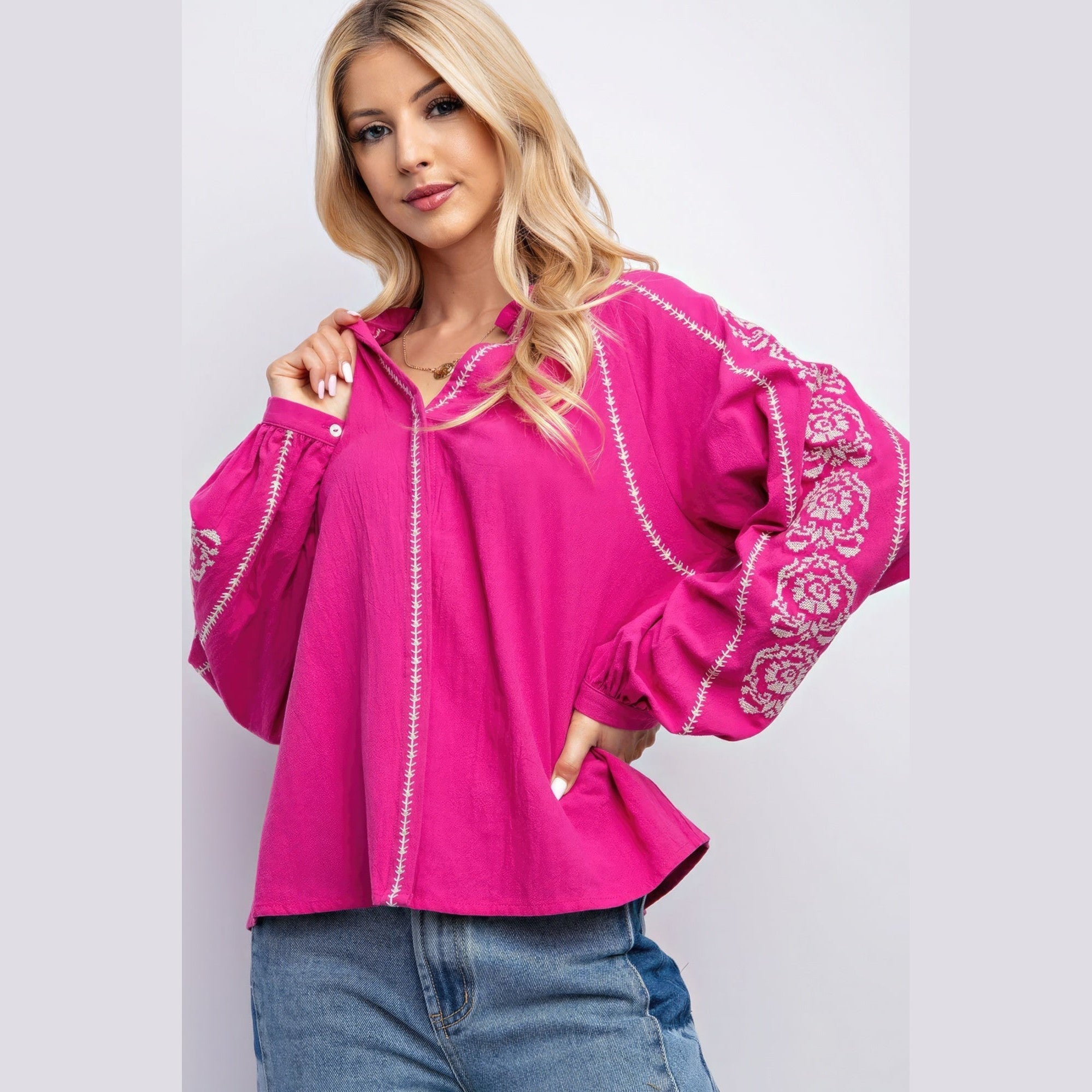 Get ready to turn heads and make a statement with our Linen Gauze Embroidered Top in Magenta. Add it to your cart now and experience the perfect blend of fashion and comfort! Feel free to adapt and expand on this template to suit the specific product you're describing and the style of your fashion website. Tailor it to the unique selling points of the product and the preferences of your target audience.