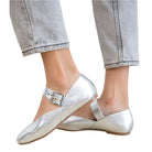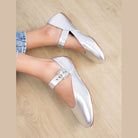 Step into timeless style with the Levi Metallic Ballerina Flat. These silver mary jane flats are designed to shine in every setting. The sleek metallic finish catches the light and gives any outfit a touch of modern flair. The adjustable buckle strap offers a secure fit for long days on your feet.