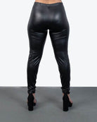Vinyl leggings with super stretch high rise, with a comfortable elastic 1" waistband.