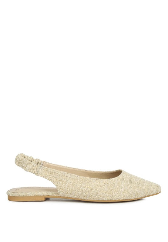 A carefully cushioned insole supports the foot, helping you stay fresh all day. The slingback elastic band gently hugs the heel. This design offers ease when slipping the flats on or off. Every pair feels like it was made for your foot.